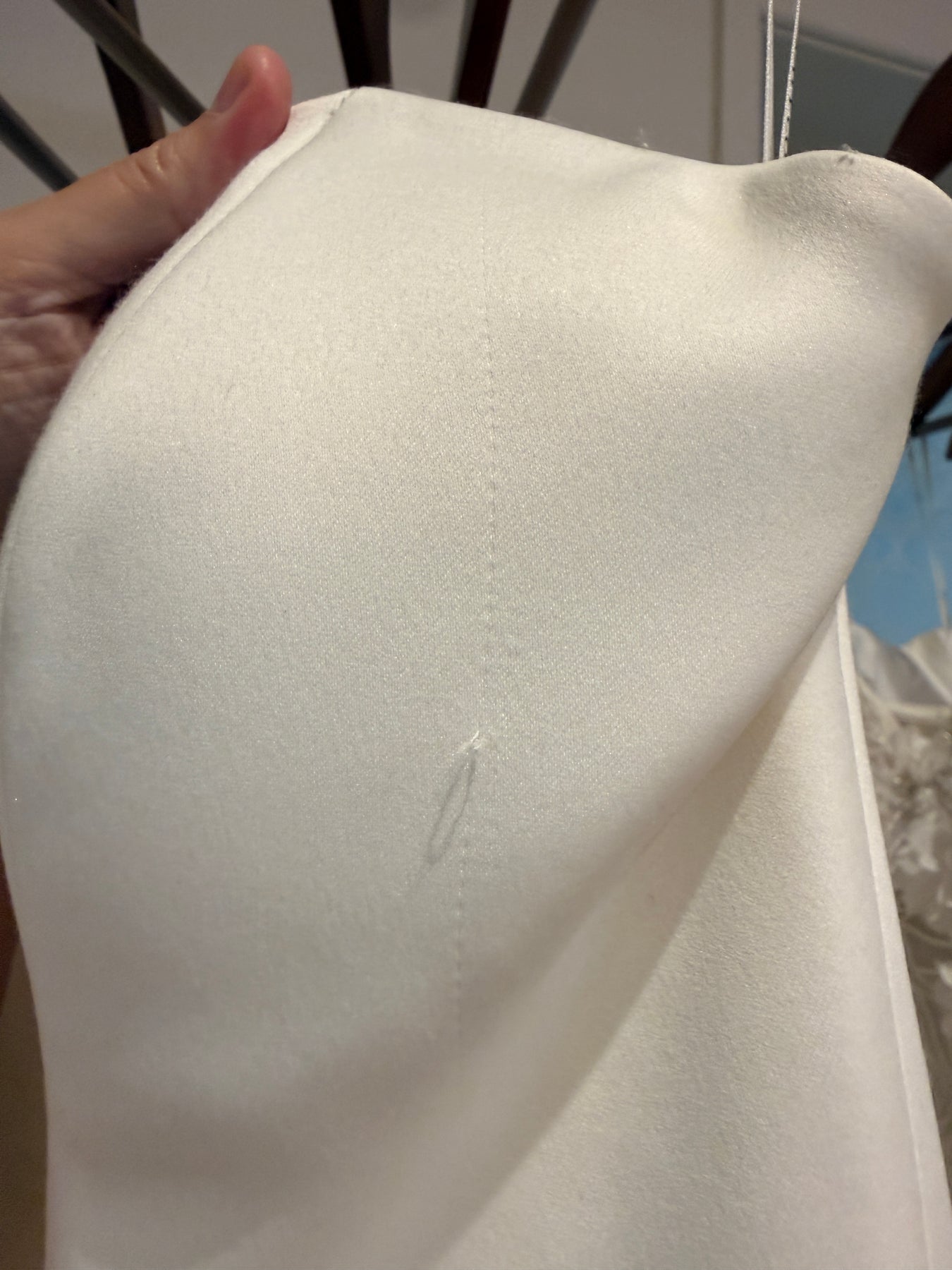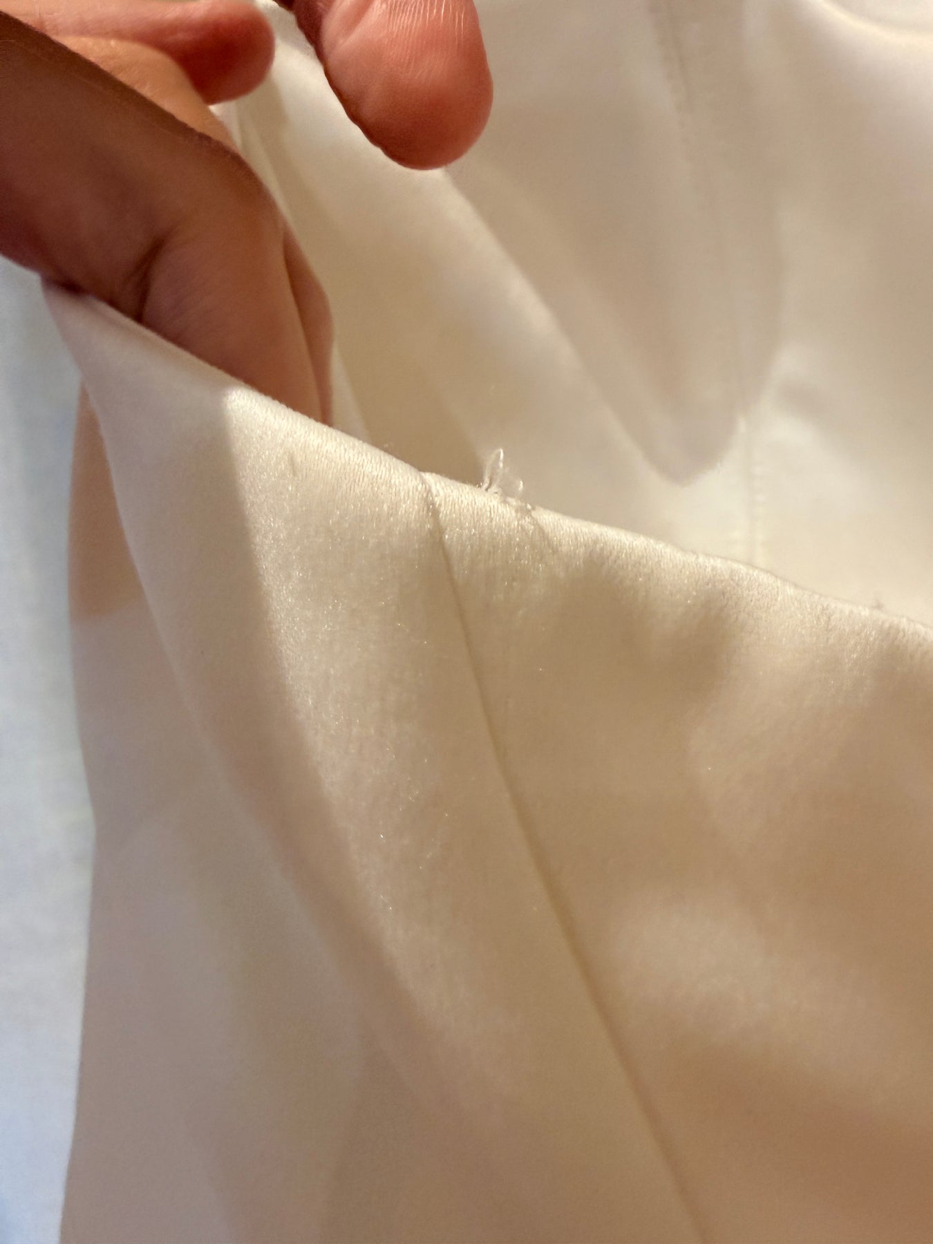 Condition: Tried on in studio only, with visible signs of wear. There are two pulls in the satin — one at the front and one at the back, shown in the photos. The robe belt also shows some cosmetic wear. These have been reflected in the price.