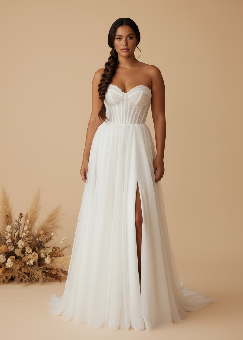 Each gown has been tried on in our boutique — while some are near-new, others may show small signs of wear (like a loose thread or faint mark). Anything noticeable is mentioned in the description and, in many cases, can be easily fixed by a seamstress if needed. These are purely cosmetic details that don’t affect the overall look or wearability — and are well worth the savings.